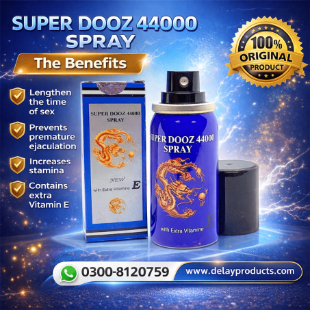 Super Dooz 44000 Delay Spray is a Specially Formulated Delay Spray Created to Help Men Improve Timing and Performance. It Works by Gently Reducing Sensitivity, Allowing You to Last Longer and Maintain Better Control During Intimacy. Its Advanced Formula is Enriched With Vitamin E, Which Helps Support Skin Health While Delivering Effective Results. The Fast-absorbing Spray Starts Working Quickly and is Easy to Use.